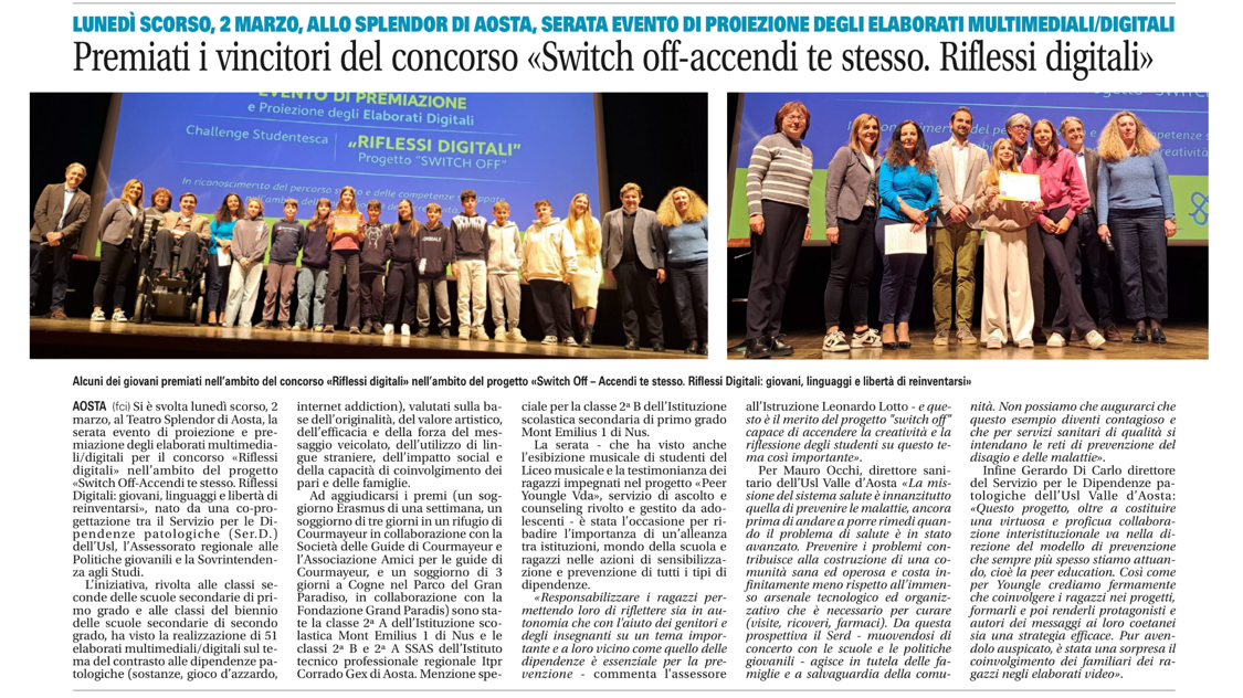 Premiati i vincitori del concorso "Switch off-accendi te stesso. Riflessi digitali" |