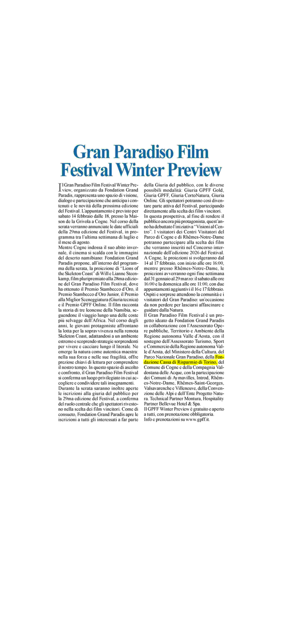 Gran Paradiso Film Festival 2026: Winter preview |