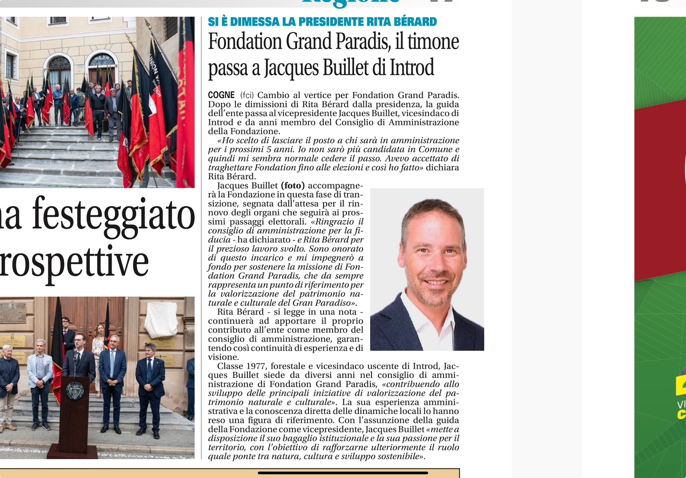 Fondation Grand Paradis, il timone passa a Jacques Buillet di Introd |