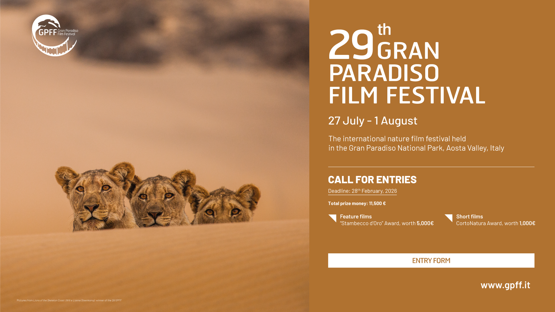 Fondation Grand Paradis comunica l’apertura delle candidature per il 29° Gran Paradiso Film Festival, concorso internazionale di film dedicati alla natura e alle tematiche ambientali. La 28ª edizione del Festival si è conclusa con successo, confermando la volontà di proseguire nel solco tracciato dall’evento: promuovere la sensibilizzazione del pubblico alle tematiche ambientali e valorizzare le straordinarie immagini e narrazioni proposte da registi provenienti da tutto il mondo.