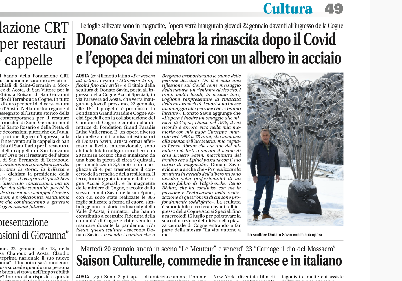 Donato Savin celebra la rinascita dopo il covid e l'epopea dei minatori con un albero in acciaio |
