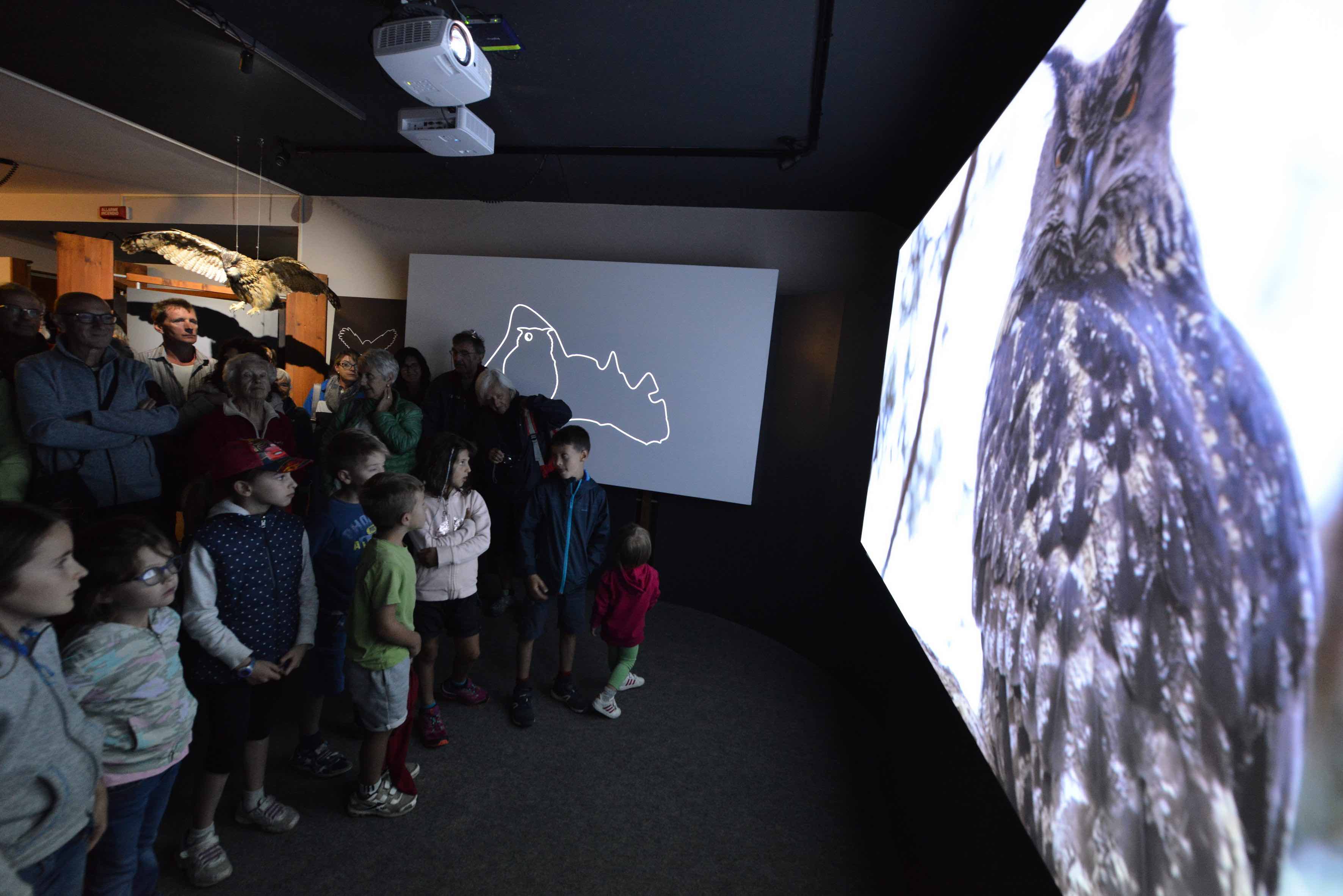 Prima tappa oggi a Rhêmes-Notre-Dame dove circa 200 persone tra adulti e bambini hanno assistito divertiti alle stupefacenti esibizioni di agilissimi cani addestrati guidati dagli istruttori del Centro Cinofilo Happy Farm; i più piccoli hanno partecipato attivamente gareggiando su percorsi ad ostacoli o tirando la palla in porta per testare le attitudini da portiere dei simpatici amici a quattro zampe. Il pomeriggio si è concluso con l’inaugurazione di una nuova postazione immersiva dedicata al gufo reale, realizzata da Fondation Grand Paradis e allestita presso Centro visitatori del Parco Nazionale Gran Paradiso grazie al progetto Interreg PACTA Promouvoir l’Action Culturelle en Territoire Alpin). È stata dedicata a questa specie elusiva e misteriosa la nuova installazione che permette di conoscere aspetti curiosi della biologia del rapace notturno: il visitatore può infatti trovare un insieme di strategie espositive e didattiche tradizionali e innovative, dall’esemplare tassidermizzato ad immagini e contenuti multimediali con cui interagire.