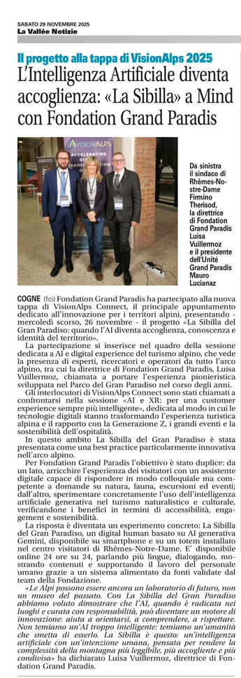 L'intelligenza Artificiale diventa accoglienza:"La Sibilla" a Mind con Fondation Grand Paradis |