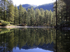Il lago del Pellaud, circondato da larici ed abeti, è una delle aree più suggestive della Val di Rhêmes.