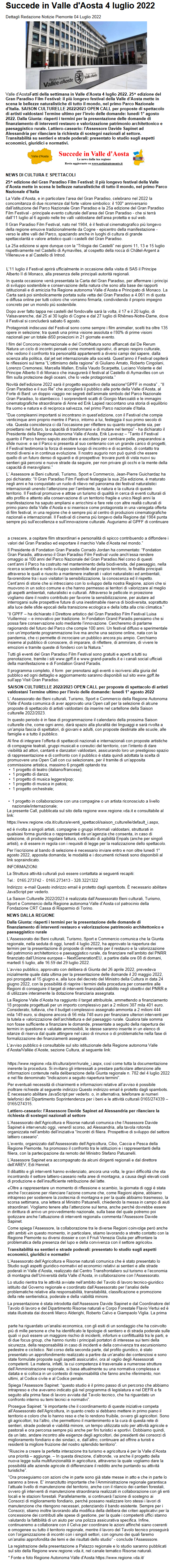Succede in Valle d'Aosta 4 luglio 2022 |